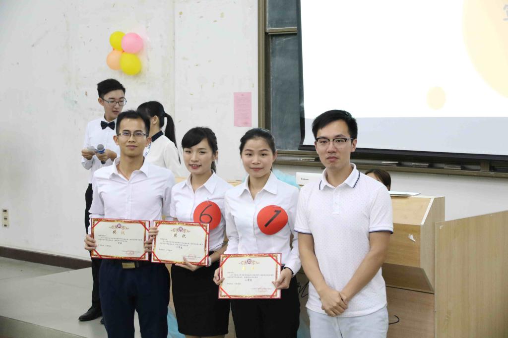 本次比赛分为小组对抗,两两对抗,职场零距离三个环节。比赛中,两组选手在阐述,谈判,面对不同的选题的过程,每一次交锋都无不展现出选手们出色的经济头脑和交际能力。在本次大赛的最后一个环节,由3名选手依次进行个人展示PPT,内容涉及到个人简介,热衷岗位,薪资要求等。评委老师根据选手的展示进行提问,各位选手以自信满满的回答赢得了评委老师的称赞和在场同学们的阵阵掌声。