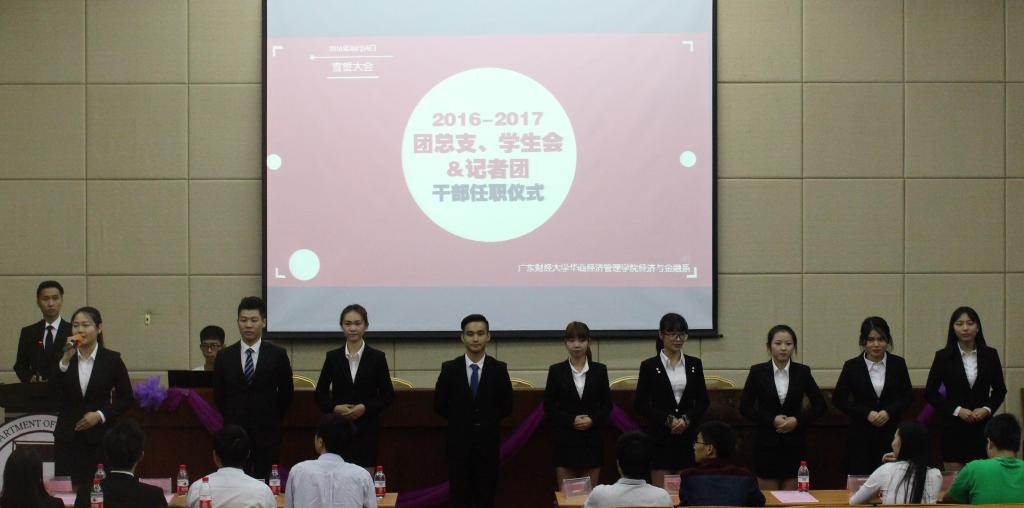 2016年10月14日晚7:00经济管理学院经济与金融系团总支、学生会,记者团宣誓大会于励志楼C208举行。