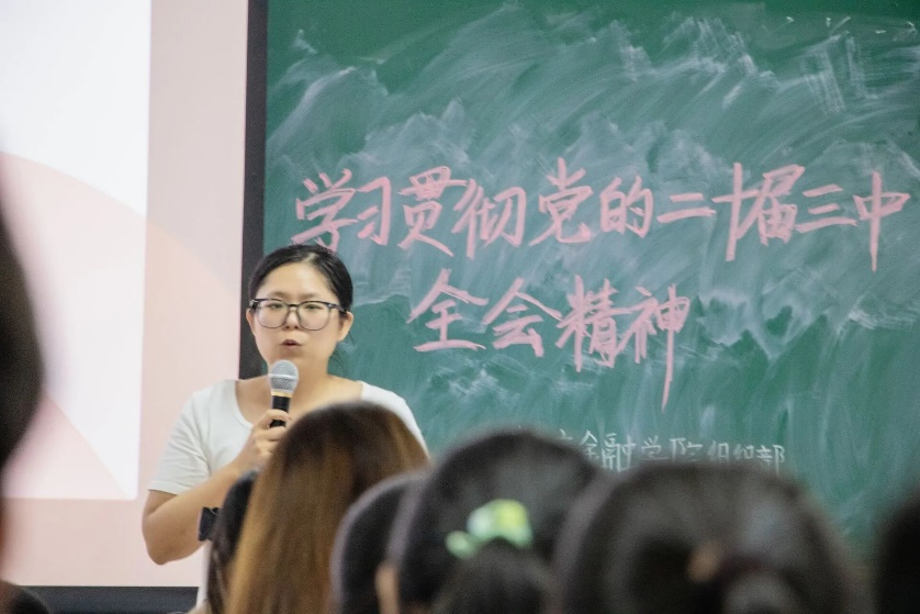 在党的二十大精神璀璨光芒的引领下,我们正处于国家繁荣昌盛、民族伟大复兴的辉煌时期,教育系统携手全社会力量,并肩同行,致力于培养一批拥有卓越创新能力与深厚家国情怀的新时代青年才俊,为奋力实现中华民族伟大复兴的中国梦添砖加瓦。为此,数字金融学院团委组织部精心策划了“学习贯彻党的二十届三中全会精神,立志成为担当民族复兴大任的时代新人”九月团生主题活动。 本次活动通过一系列生动鲜活的实践探索与志愿服务,引领每一位青年学子深刻领悟党的二十届三中全会精神的精髓要义,清晰定位自己在新时代的角色与责任,将学习感悟转化为推动国家发展、促进社会进步的强大动力,携手绘制新时代青年绚丽多彩的青春画卷,共同开创属于这个时代的辉煌未来。 数字金融学院团委组织部于2024年9月26日19:00在肇庆校区16号楼102教室开展“学习贯彻党的二十届三中全会精神,立志成为担当民族复兴大任的时代新人”主题团生总结大会。 全体嘉宾及观众在主持人的带领下奏唱团歌。 数字金融学院团委组织部旨在通过观看《决胜时刻》电影,加深同学们对的二十届三中全会精神理解。 数字金融学院团委组织部精心筹备并推出了一系列公益服务活动,旨在引领大家将个人的进步与贡献社会的崇高使命紧密结合,让青春在为人民服务的广阔舞台上绽放光彩。 我们举办了“线上故事征集与分享活动”,旨在汇聚参与者的亲身经历与深刻感悟,通过这些真实的故事传递党的二十届三中全会的核心要义,使每位学子在共鸣中深刻领悟时代精神,从而携手共进,迈向未来。 我们还邀请了教师教育学院歌手队,他们不仅为同学们演唱了《逆光》,还带来了精彩的舞蹈表演。 本环节为知识竞赛活动,同学们踊跃参与。问题紧密围绕二十届三中全会精神的深刻内涵与丰富要义展开,同学们在解答的过程中,不仅深化了对二十届三中全会精神的理解,还使本次活动的主旨精神得到了生动体现,实现了理论学习与实践感悟的有机结合。 最后,数字金融学院团委副书记赵颖祯上台做了总结,她着重指出,无论个体身处何种职位,只要怀揣着不懈的奋斗精神和勇于拼搏的斗志,就能赢得他人由衷的尊敬。而那些能够默默做好本职工作,持续精进专业技能,致力于将本职工作做到尽善尽美的人,正是我们这个时代最为宝贵的好青年典范。他们通过实际行动,诠释了责任与担当的深刻内涵,展现了新时代青年的精神风貌。 至此,会议圆满落幕,希望每位参与者将实践所得转化为精神财富,将技能提升与心灵磨砺相结合。让这些经历成为你前行的灯塔,照亮道路。同时,也愿你能将这份正能量传递给更多人,共同为学校的繁荣、社会的进步贡献力量。期待未来再见,见证你们更加辉煌的成就!