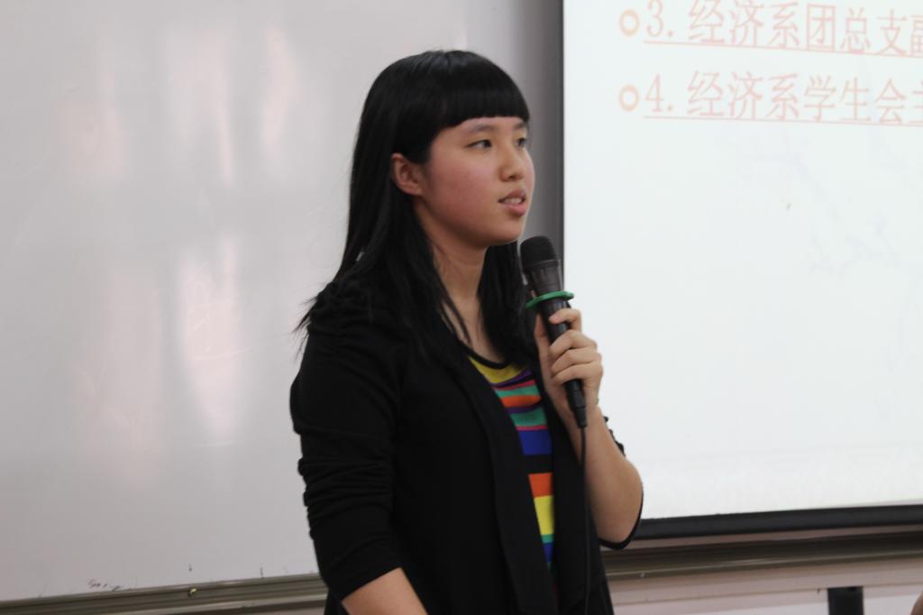 首先是由王德高主任进行讲话,王主任先对学生会在过去的一年的工作进行了中肯的评定,肯定了学生会的工作能力,也明确表明学生会的优势地位,并感谢往届为学生会作出贡献的同学。王德高主任也明确提出学生会的干事干部们身为学生干部要以学生为前提,注重与同学们学习、生活的沟通,照顾好其他同学,了解同学们的想法,更要起到模范带头作用。王主任还指出学生会的干事干部们要以学习为重,然后为其他同学树立榜样。接着是由经济系学生会主席欧阳婷师姐进行讲话。欧阳婷师姐为我们介绍了学院领导、经济系办公室老师、经济系团总支副书记、经济系学生会主席,并激励在座干事在激情褪去的时候仍要坚持自己的道路,把握好自己的时间继续努力奋斗。