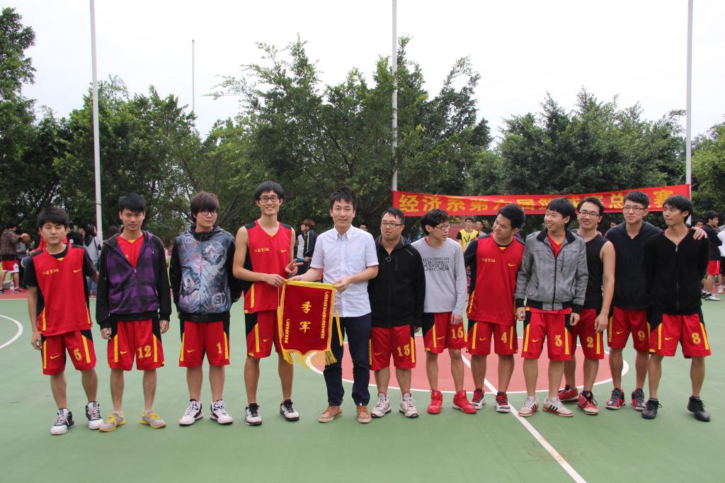 天公作美,阳光在下午暖暖地晒着大地,迎来了经济系第六届篮球总决赛。首先进行的是季军争夺赛,由11级国贸二班对阵11级国贸七班。比赛过程中,双方浑身解数,都为着季冠这一目标进攻,让在场的观众们更是热血沸腾。随着时间的推移,最后的哨声宣布季军的诞生,11级国贸二班以34:26战胜11级国贸7班获得季军。接下来进行的是更令人热血沸腾的冠军争夺赛,由10级国贸一班对阵11级国贸二班。在总决赛进行前,更是邀请了经济系主任黄国富老师到现场讲话,以及经济系的声乐队到现场演唱打气歌。双方的气势均敌,在各班的拉拉队的打气下,已经各自熟练的技巧,默契等,双方的比分一直不相上下,维持着平分。第一场结束后,双方的比分相同。在接下来的下半场比赛中,10级国贸二班开始与10级国贸一班拉开差距,双方精彩的比赛更是令现场观众激动不已,冠军之争果然是不负众望,精彩至极。时间随着运动们的体力消耗而过去了,在国贸二班的比分与国贸一班的比分拉开到7分时,国贸一班的健儿们用一分钟就把比分缩小到2分,接着双方的比分又持平了,离比赛结束的时间越来越短,现场越来越兴奋,比分的持平更是激起双方的狠劲,最后国贸二班以一个罚球一分之差48:47险胜国贸一班,获得经济系第六届篮球赛总决赛冠军。