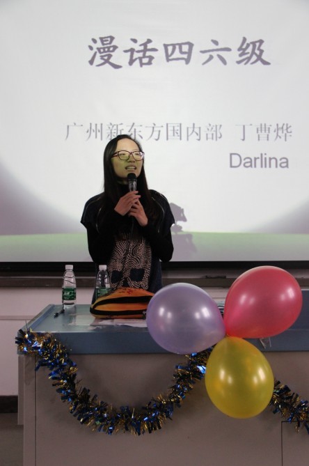 2012年11月27日下午3点,经济系学生会学习部在励志楼D308举行了精彩的新东方四六级考试备考指南讲座。本次讲座邀请了来自广州新东方国内部的丁曹烨讲师,广州新东方市场部专员孙鹤老师,以及他们的团队。出席本次大会的有经济系学生会主席欧阳婷,副主席王伟潮,院膳食管理委员会会长李嘉健,以及经济系各部门的部长等。