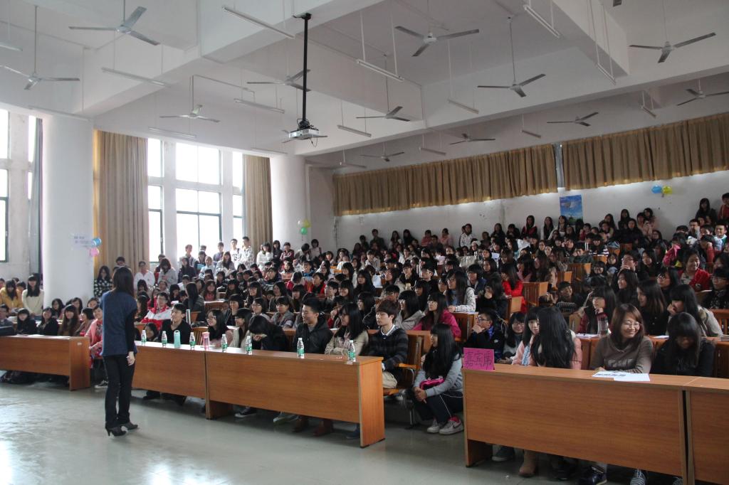 活动开始时现场的气氛有点浮躁,但丁曹烨老师凭借其出色的演讲能力使现场的气氛逐渐稳定下来。老师详细地为我们讲述了如何确立目标,如何备考四六级考试,四六级考试的主要流程,以及考试内容等等。使现场的同学受益匪浅,也让我们对四六级考试有了一个更深的了解。老师还向我们展示了很多很深刻的例子,告诉我们四六级考试的重要性以及该考试对我们日后发展的重要影响。给在场的同学敲响了警钟,提醒着我们要认真备考。老师是个很幽默风趣的人,讲课很注重现场的互动,她一次次的互动,和幽默的话语把现场的气氛推上了高潮,同学们都十分乐在其中。