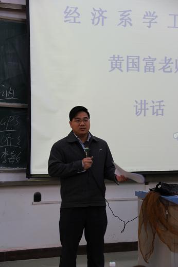 2012年2月28日下午于励志楼D208召开安全教育暨干部培训大会。出席本次大会的嘉宾有经济系主任王德高教授、学工助理黄国富老师、10级辅导员郭锦荣、11级辅导员黄素贞,以及学生会和团总支的干部、干事们,班级干部等。