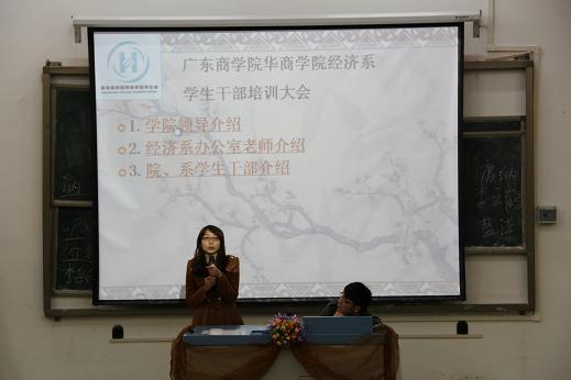 2012年2月28日下午于励志楼D208召开安全教育暨干部培训大会。出席本次大会的嘉宾有经济系主任王德高教授、学工助理黄国富老师、10级辅导员郭锦荣、11级辅导员黄素贞,以及学生会和团总支的干部、干事们,班级干部等。