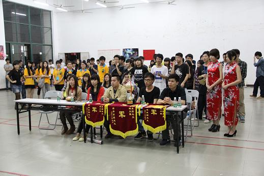 历经3个小时的比赛,09统计班与10国贸1班的比赛最终分出胜负,桂军的宝座被09统计班收入囊中。好戏总是压轴的,比赛进入最紧张时刻,冠军的宝座将花落谁家?就看10国商2班与11国贸4的对决!第一轮混双,10国贸2以15比9和15比3连胜两局。现场双方激动不已,暂时领先的信心满载,稍微落后的希冀十足,记分牌每刷新一次,啦啦队就欢呼一次,此起彼伏的欢呼声在整个球场回荡。第二轮的男单俞加激烈,满场尽是“噼噼啪啪”爽朗的拍球声、一浪接一浪的欢呼声。纯熟的扣球、迅速的反应、敏捷地将球一送,球一落地,记分牌一翻:15比9——10国商2班的同学欢呼雀跃!