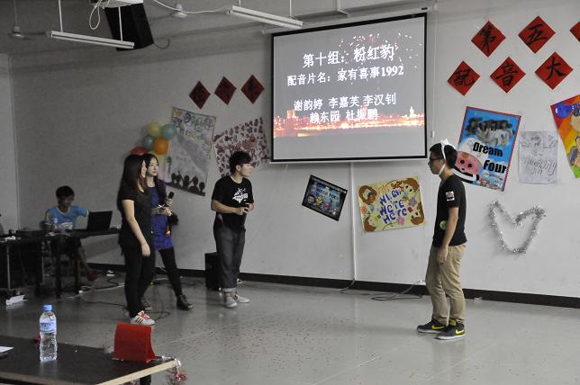 2012年5月27日晚七点半,我们在厚德楼C111迎来了由经济系学习部组织的第五届配音大赛总决赛。到场的嘉宾有经济系主任王德高教授,11级辅导员黄秋铭老师,学生会主席张佳欣,经济系团总支副书记赖东园,文学社秘书长霍洁仪,经济系学习部部长黄啟霖以及经济系各部门的副部长。