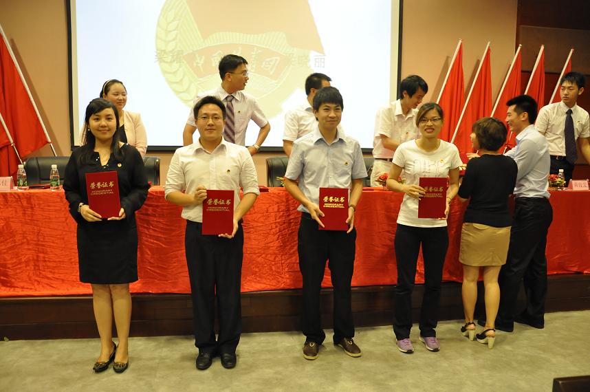 大会共有七项议程,第一项是奏唱国歌。全体起立,国歌在会场回荡。礼毕后进行第二项,学院团委杨宪书记发表讲话。杨宪书记首先肯定了院团委组织为学院迎评及共青团工作所作出的贡献,同时也应该大力增强团委组织的影响力,对广大青年团员做好思想政治教育。此外,还需总结经验、根据实际更好地完善团委组织管理。精彩发言过后进入大会的第三项,进行“五四”表彰。由刘苗副书记宣读《关于公布第二届大学生科技学术文化节比赛结果的通知》、《关于表彰2011-2012学年度共青团工作先进集体和优秀个人的决定》、《关于表彰2011年度增城市共青团先进集体和优秀个人的决定》。而后进行颁奖,包括“十佳共青团员”、“十佳共青团干部”、“优秀专职团干部”等七个奖项。其中,经济系郭锦荣老师荣获“优秀学生分会指导老师”称号,赖东园副书记荣获“十佳共青团干部”称号,09本国贸2班团支部等荣获“优秀团支部”称号,经济系团总支荣获“五四红旗团总支”称号。