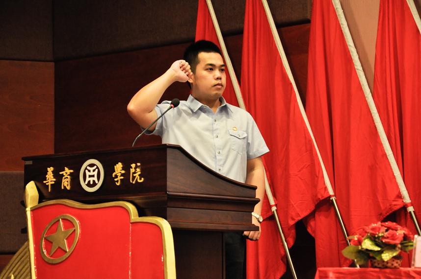 大会第六项,重温入团誓词。由院团委常委黄俊发领誓,全体起立进行宣誓。紧接着的是大会的最后一项,奏唱团歌。那一刻,在场的各位都是一脸庄重,在歌声中回忆着入团以来的日子。