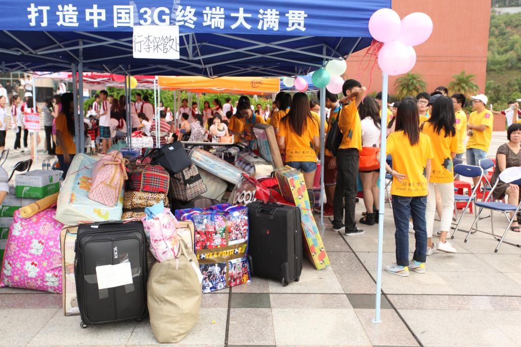 2012年9月7日、8日,广东商学院华商学院迎新工作全面展开,一批批全新面孔将要在华商校园迎来自己人生的新篇章。七时许,图书馆外各系大本营、图书馆内新生办理报到手续的工作点也已经布置好,工作人员和穿黄色衣服的志愿者们蓄势待发。
