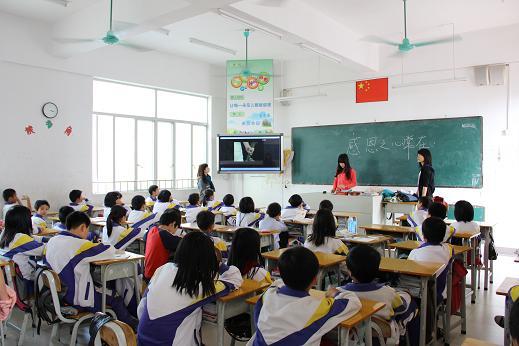 班会开始时,经济系志愿者先进行一一自我介绍,然后开始班会的第一个环节,播放PPT和视频,让同学们学会感恩社会,少一些抱怨,多一些感激。第二个环节是这次班会最活跃的环节,志愿者和学生们一起玩游戏,每个同学都积极配合着,他们玩了画鼻子,抱抱团等游戏,同学们除了获得快乐、获得礼物之余,还学会感恩同学。最后一个环节是最能响应这次班会的主题,华商志愿者教同学们唱“感恩的心”还教同学们这首歌的手语,同学们认真得学着,场面感人。