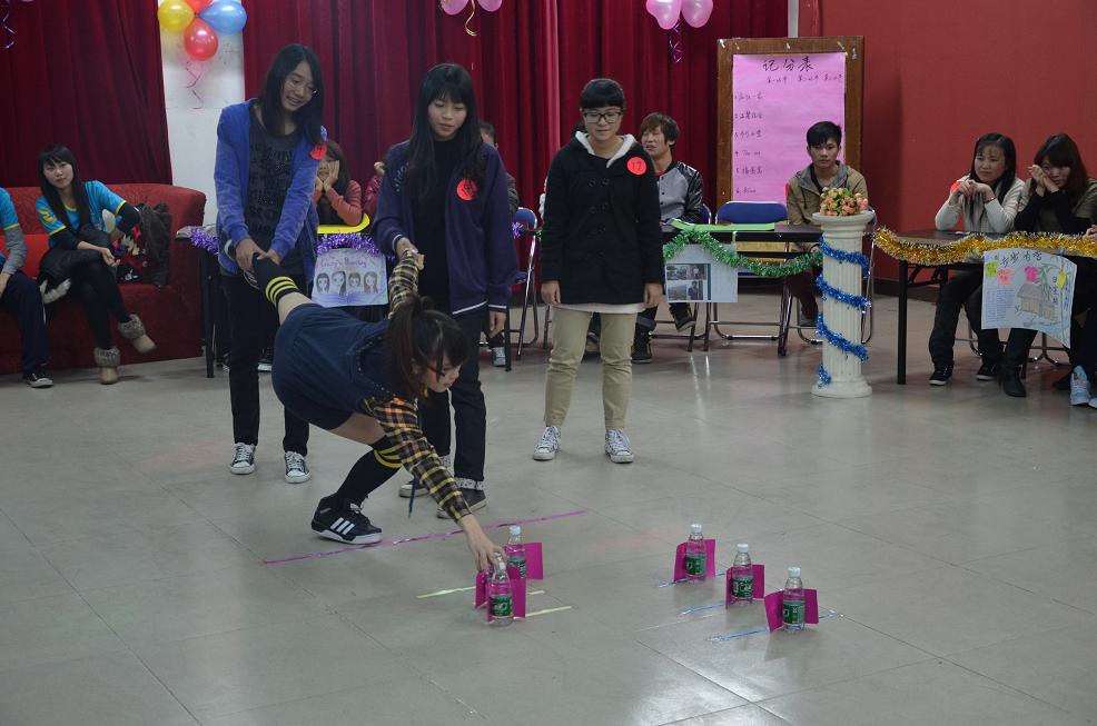 在主持人开场白之后,由经济系舞蹈队带来的Jazz拉开了本次大赛的序幕,精彩的节目让大家很快融入到欢乐的气氛中。本次决赛分为三个环节,第一个环节是生活知识竞赛,由必答环节和智力体力环节组成;第二个环节是情景剧表演,由主持人读出题目然后每个小组按照情节演绎出来;第三个环节是圈圈叉叉,每一个回合是两个小组,由主持人提问题,然后小组成员用圈圈或叉叉来表示是或不是。在每一个环节当中,各个小组表现得都非常不错,虽然有些小组在第一环节分数稍微落后于其它小组,可是很快在后两个环节把比分拉上来。在情景剧表演环节,“捣蛋窝”寝室和“疯狂一家”生动的演绎引得台下观众阵阵笑声,并不断的响起掌声和欢呼声。紧接着,在观众抽奖环节以及在经济系声乐队带来的表演更是让台下观众热情高涨,气氛更活跃。
