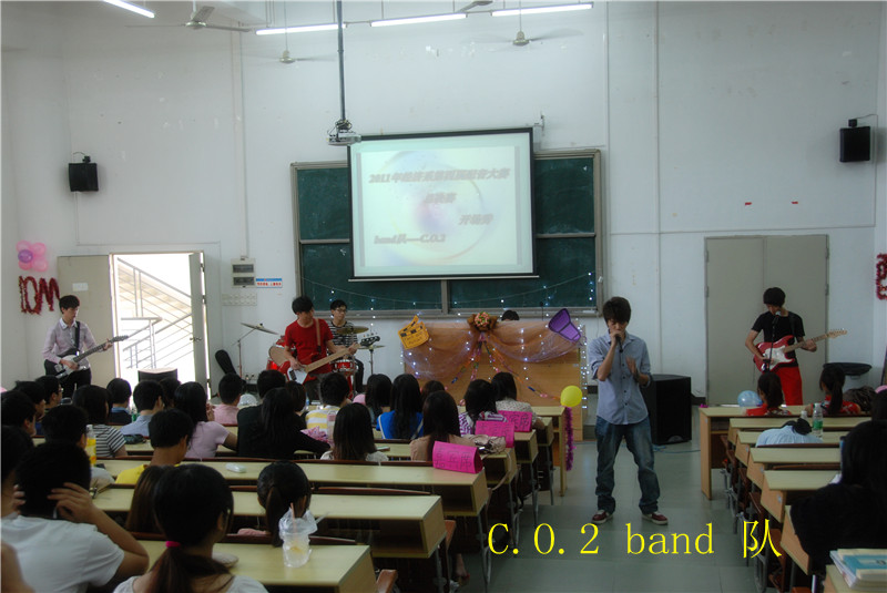 比赛开始之际,让在场观众惊喜的是,主办方邀来了CO2这支乐队来作开场秀。虽然开始设备出现小小问题,但依然为此次大赛的开始活跃了气氛。而让大家大开眼界的,则莫过于是上届配音大赛的冠军得主的精彩表演。一个人能很出色的配多个不同的角色,其过人之处是不用多说的。看完上届冠军的精彩表演后,配音大赛正式进入主题——进入决赛的十支队伍进行没有硝烟的角逐。