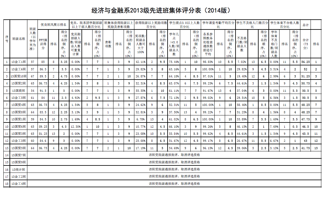 附件:经济与金融系2013-2014学年度先进班集体最终评选结果