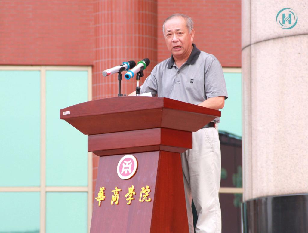 升旗仪式过后,廖榕就董事长上台致辞。他表示今年新生是具有历史意义的一届学生,希望同学们秉承“励志厚德博学创新”的校训,不负年华,学有所成。