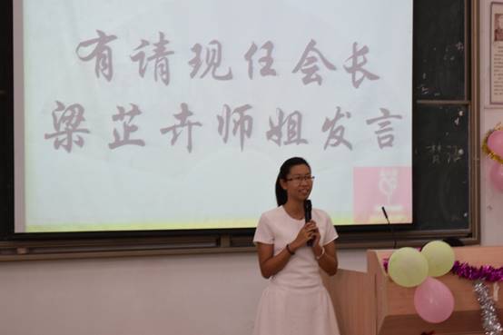 李单纯师姐和梁芷卉师姐发表讲话。与其说是讲话不如说是对每位干事辛勤劳动的肯定,也是对各位新干事们的期盼和祝愿,相信在我们年轻的部长的带领下,益心园会变得越来越好。