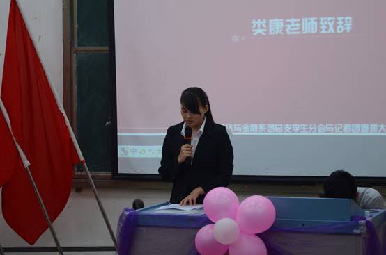 团歌奏唱结束后,类康老师上台致词,类康老师对经济与金融系团学与记者团提出了几点要求,并希望团学与记者团能够展望未来,走向新台阶。