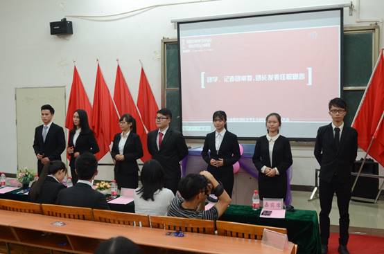 随后,大会举行了2015—2016年度经济与金融系团学、记者团任职仪式。团学、记者团常委、团长及部长分别发表了任职宣言,每一位任职人员的宣言都表明了他们对待工作不变的热情以及认真负责的态度。