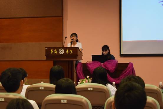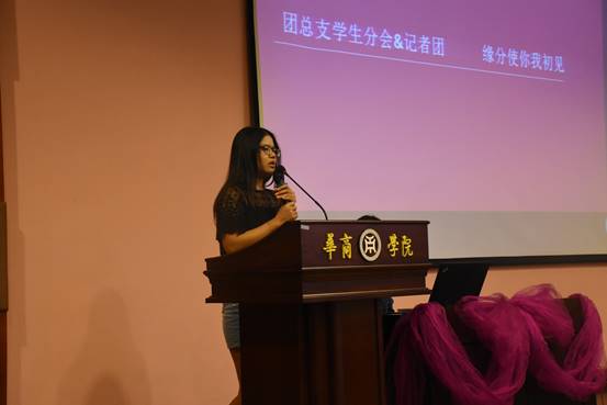 经济与金融系14届团学副书记周晓婷师姐上台分享她的工作心得以及她对团学和记者团的建议和期望。师姐主要从三个方面进行讲述,一是“缘分使你我初见—经济与金融系团总支学生分会和记者团”,二是生存法则包括礼貌、团队合作以及如何解决学习和工作方面的冲突等,三是勿忘初心,方得始终。师姐表示:选择了就要走下去,这条路没有尽头,当激情退却热情不在,剩下的更多的是责任,还要时常怀有一颗感恩的心,感恩帮助你成长的人。这样,愿日后每次回忆起都不曾感到遗憾。