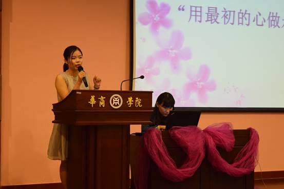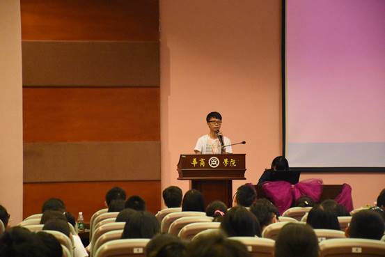 在现场热烈的气氛中原系语言艺术队队长杨晓雯师姐走上讲台。师姐总结了学生干部的自我修养所具备的前提。用最初的心做永恒的事,加强自身的时间观念,学会时间规划和提高做事效率,并勇于去尝试,态度决定一切恰恰能力又是和态度相匹配的。的确,我们都明白,如果连尝试的机会都没有那才是真正的失败。然后师姐结合自己的工作经历给我们讲了语言艺术的魅力,处理好人际关系首先要学会沟通,懂得团队合作和学会分享,还要怀抱感恩,知足常乐。师姐的精彩演讲让我们明白重要的不是你所处的位置而是你想成为怎样的人,是啊,在追梦路上少不了荆棘,给自己多一份自信,即使跌倒了我们依然能带着梦想继续前行。