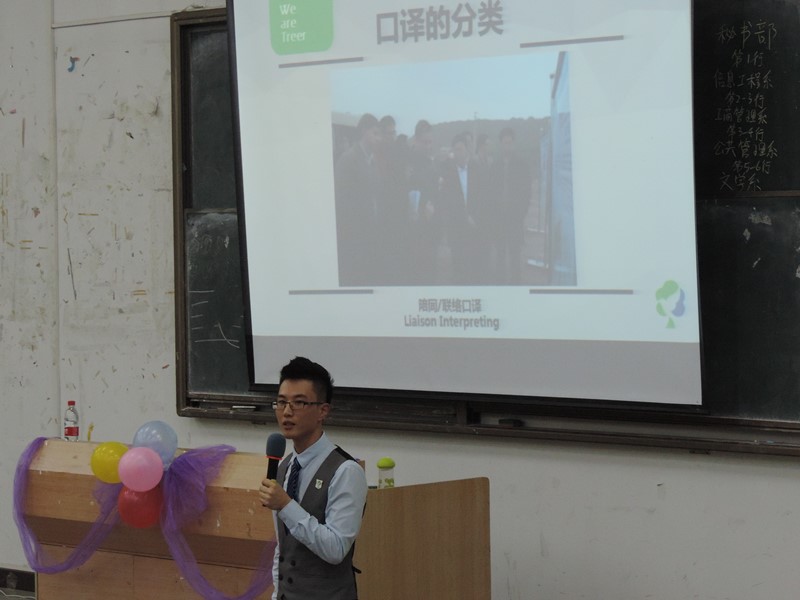 为了增添学习英语的氛围,展现英语口译的风采,由经济与金融系学生分会学习部承办的英语口译讲座于2015年11月18日晚18点30分于励志楼B207正式开讲。