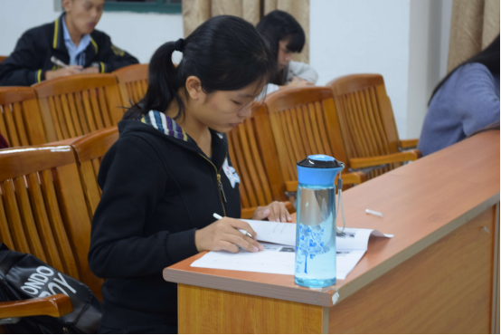小干事们都准时到场,按时进行干部培训测试考试。一看到试卷的他们,有的一惊一乍的,有的胸有成足似的,有的泰然自若······考场内鸦雀无声,大家都聚精会神,在埋头苦干,在奋笔疾书,尽自己最大的努力去交一份满意的答卷。