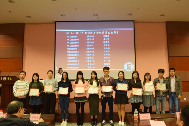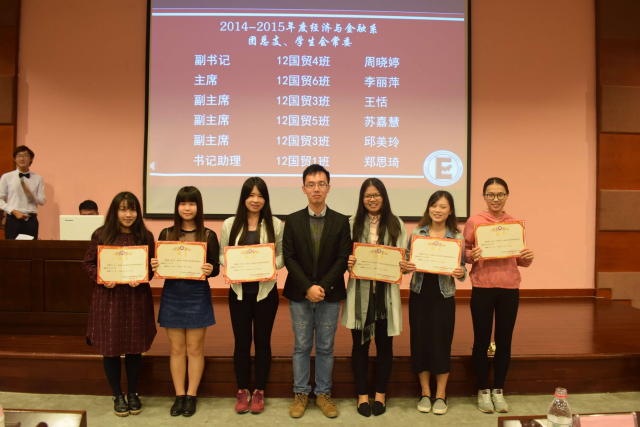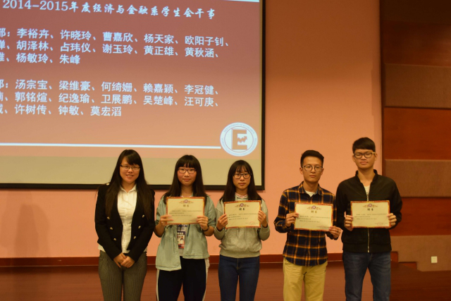 本次大会表彰项目共有14项。表彰2014—2015学年“经济与金融系先进班集体”、 2014—2015学年经济与金融系“学习标兵”、2014—2015学年经济与金融系“优秀学生干部”、 2015—2016年经济与金融系迎新“优秀组织者”,2015—2016年经济与金融系迎新“优秀志愿者”,颁发2014—2015年度经济与金融系团总支学生会常委、部长聘书、2014—2015年度经济与金融系记者团团长、部长、干事代表聘书、经济与金融系艺术团团长、裁判团团长、辩论队队长聘书等等。