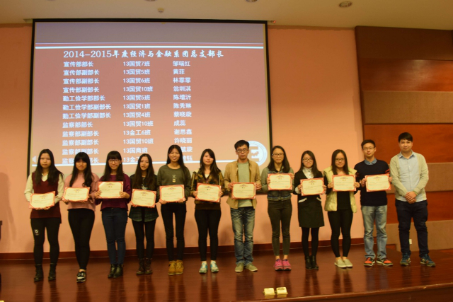 2014—2015年度经济与金融系团总支学生会常委、部长聘书