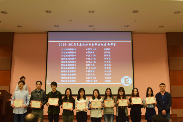 2014—2015学年经济与金融系表彰大会 华商十年,历经蜕变。风雨兼程,育人不倦。没有昨天的辛勤耕耘就没有今天的硕果累累。在华商学院十周年校庆到来之际,我们经济与金融系在12月1日晚上6:30在国际会议中心四楼汇报厅隆重召开2014—2015学年经济与金融系表彰大会。