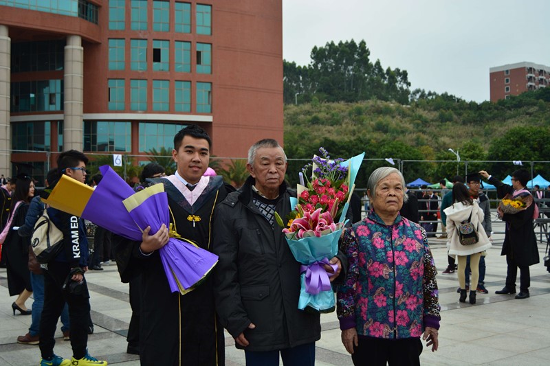 今天,亲友团们早早就入场为毕业生们送上祝福。好朋友们捧着鲜花,带上最诚挚的祝福来到现场。相信每个家长也都期待过这么一天,打扮得美美的去参加孩子的大学毕业典礼。他们不惜舟车劳顿早早赶来,只为亲眼见证孩子穿上学士服的那一刻。