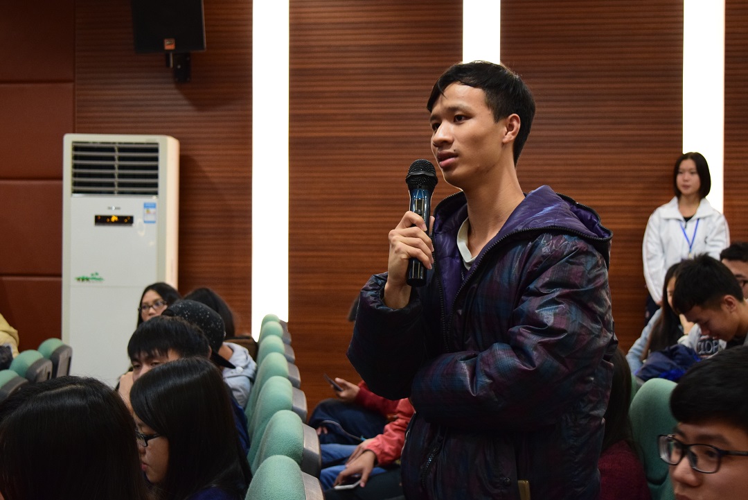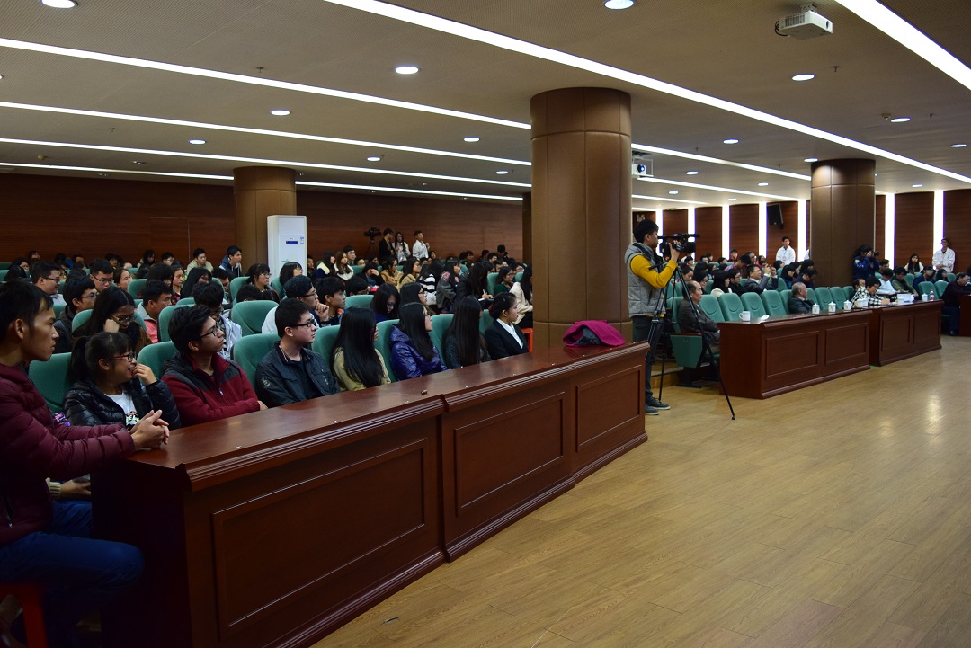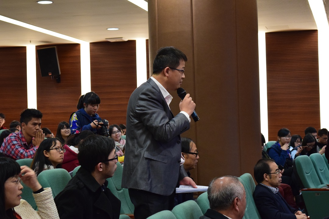 在讲座的最后是现场问答交流,老师同学们都抓住难得的机会争相发言提问,向李教授请教经济学上的问题,对于同学们的提问,李教授都做了详细的解答。李教授独到的观点,幽默温和的言语更是将现场气氛推至新的高潮。