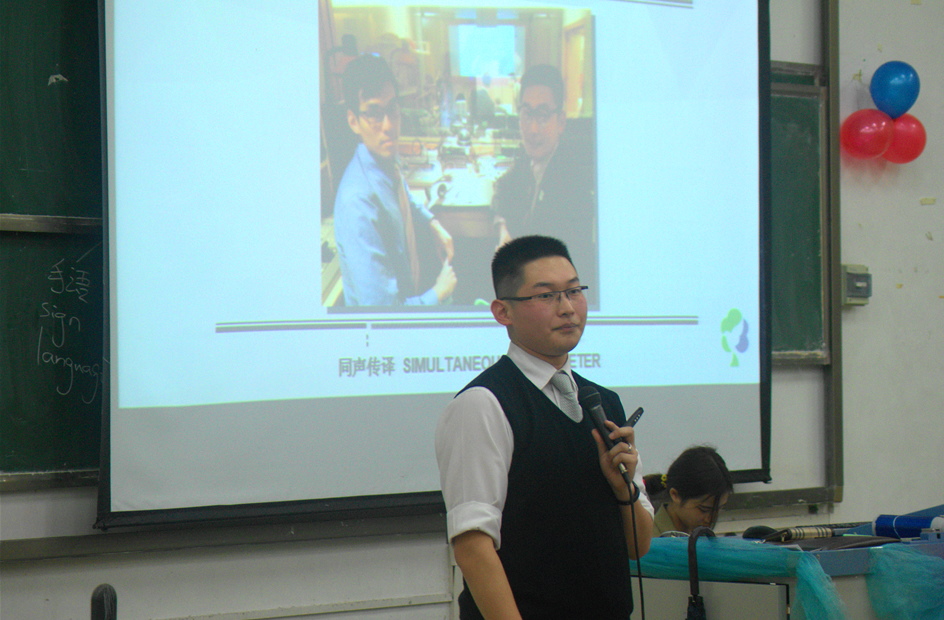 老师以自己丰富的经验,略带调侃的语言讲述自己从“屌丝”到“同传”的奋斗史,没有传统的说教,刘老师是个幽默的主讲人,总能把原本枯燥的内容讲得栩栩如生,让同学们在一次次欢笑中领悟到刘老师传授的技巧和经验。