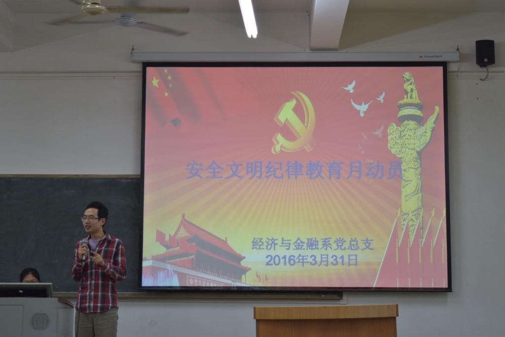 2016年3月31日下午6:15分经济与金融系党组织生活在励志b403开展。以“维护消费者权益,共筑消费新生态”为主题。