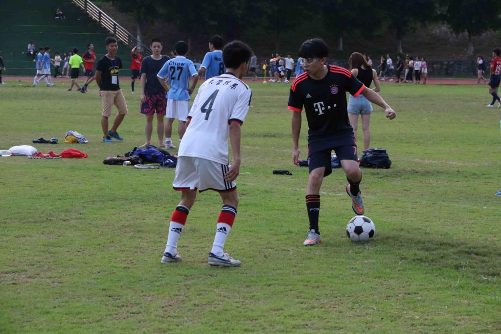 一开始,双方队伍互有攻守,难分胜负。经济与金融系队的队员突然发力欲将足球直接射入球门,但被对方门将拦截未能得分。10分钟后,经济与金融系队稳住脚步,通过你来我往的快传,经济与金融系队从侧边射进一球,先夺一分。场下队员不禁大声叫好。