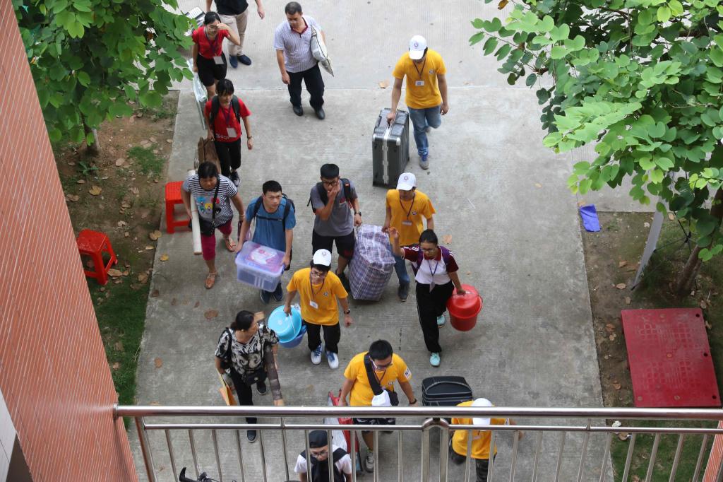 报到过程中,新生们都有着各自的茫然,但这不是问题,因为校园的每个角落都有老师和志愿者们,他们热心的为新生解惑,帮助他们顺利完成注册。在宿舍楼下,我们志愿者为新生们搬行李上楼,虽然好多志愿者都是柔弱的女生,但在这一刻,我们都是女汉子。