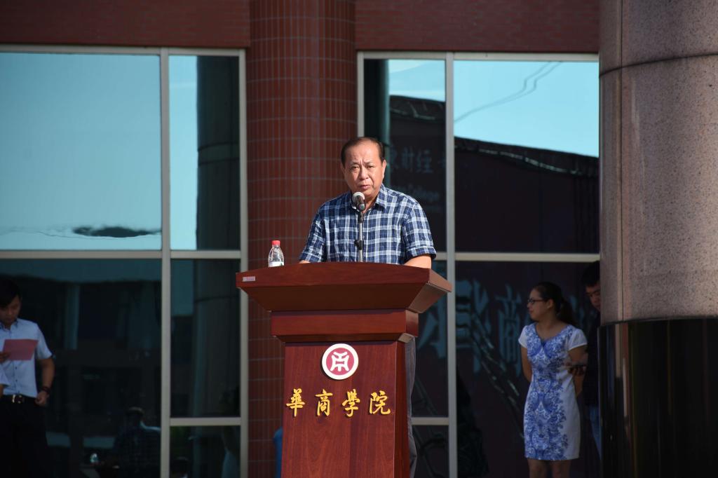 开学典礼在庄严的国歌中拉开了序幕,廖榕就董事长上台致辞。他代表董事会向各位出席典礼的领导、嘉宾和老师,对华商学院5000多名新同学表示了热烈的欢迎。同时,廖榕就董事长象向新生阐述了建校的初衷,也向新生展示了学校一直秉承着“厚德励志博学创新”的校训,向着“创百年名校,育华夏英才”的理想目标前进着。他告诫新生“一寸光阴一寸金,寸金难买寸光阴”。要珍惜时光,勤奋学习,勇于攀登,互相关心,互相帮助,尊重师长,严守纪律,把自己培养成德智体美全面发展的人才。