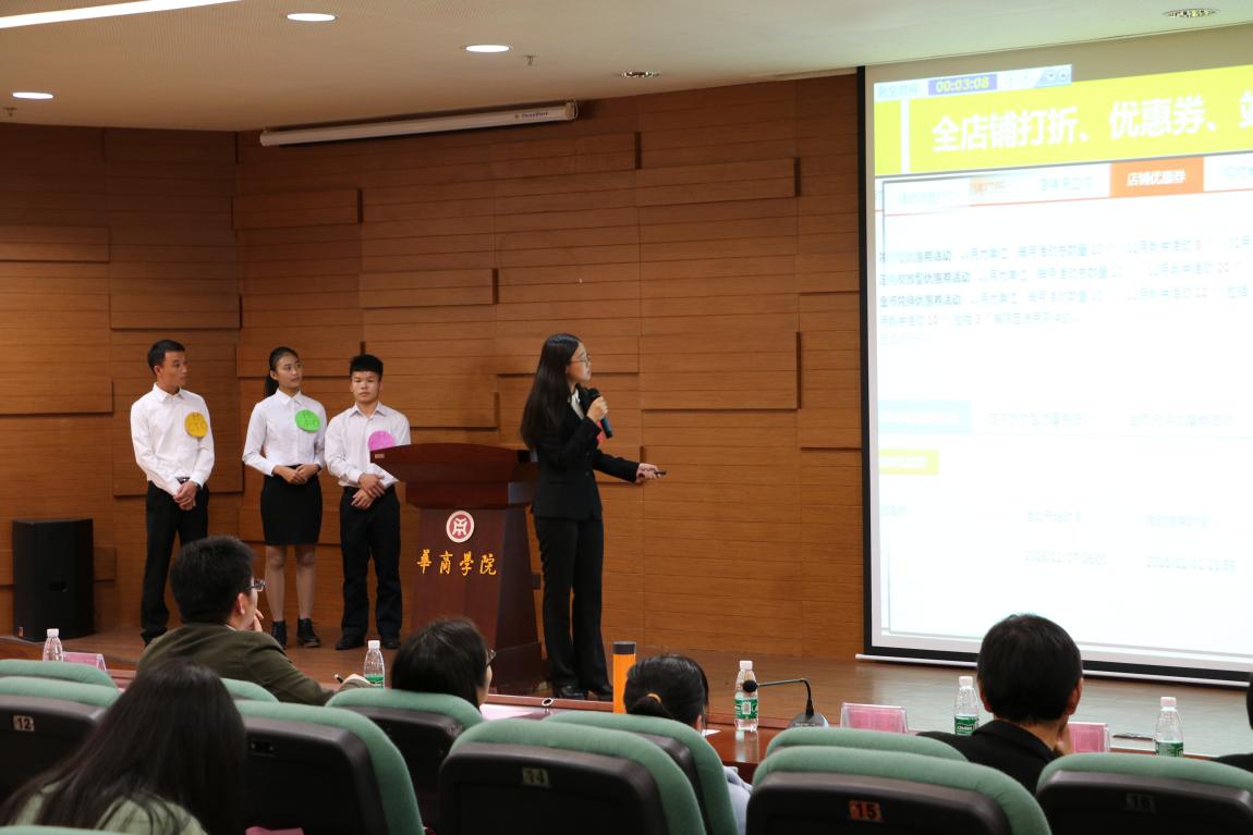 趣味之后,D-F组的比拼再一次掀起全场的高潮。D组J&D,PPT分行业分析、产品分布、运营推广、经营业绩四部分演讲;E组阿里马马,主要进行了产品介绍,进货来源,销售的ppt演讲;F组E-star,主要介绍了主打产品以及各方面的资金计算等内容。比拼中,他们不相上下;面对评委的提问时,他们从容淡定;对于老师给出的建议,他们虚心接受。