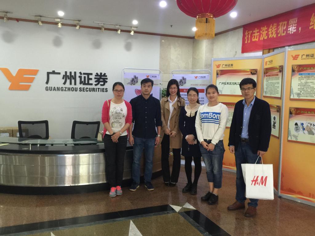 为及时了解掌握我系毕业生实习工作情况,加强学校与用人单位的交流,更好开展毕业实习指导工作。2017年3月30日,我系2017届毕业生实习指导老师们集中走访了广州证券、深圳瑞福资产管理有限公司、广州方盈投资有限公司等多家毕业生实习单位。