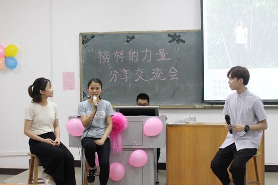 14本国贸3班黄彩艳和15本国贸3班杨珊珊的分享更是别出心裁,她们就校园活动和社会实践展开了此次分享。为了增加本次交流会的气氛,黄彩艳还对室友进行爆料,吸引到台下观众的注意,现场的气氛一度被推向高潮。杨珊珊则对室友表现感谢,感谢大家互相激励,互相影响。玩笑之余,榜样们都提出了自己下个阶段的目标,并说明付诸努力的方式。