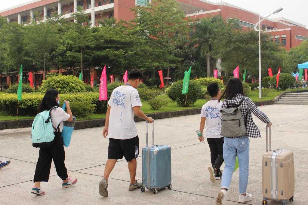 志愿者和工作人员们穿梭在校园的各个角落,从新生进入校门开始,他们协助新生和家长搬运行李,在搬运行李的同时不忘为新生和家长们介绍华商的大体情况,一路欢声笑语,秩序井然,打破了新生初来乍到的陌生感。存放行李后,他们热情主动为新生及家长讲解注册流程,详细的讲解令家长们和新生们倍感亲切,感受到了一种团结向上、积极进取的力量。随后志愿者引领新生到图书馆办理入学注册手续,稚气未脱的新生及耐心亲切的工作人员一度挤满图书馆一楼。新生开学报到手续完成,他们载着父母加注的深深期盼,成为华商的一份子。