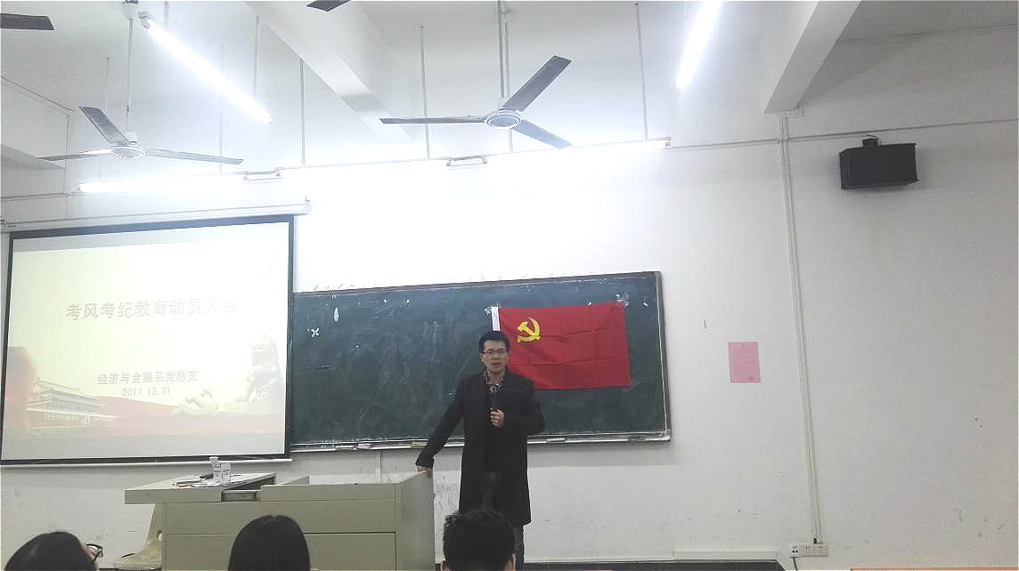 经济与金融系党总支于2017年12月21日晚在励志楼C204召开了考风考纪教育动员大会,学生第一党支部书记王国庆老师和全体党员同志出席了本次大会。