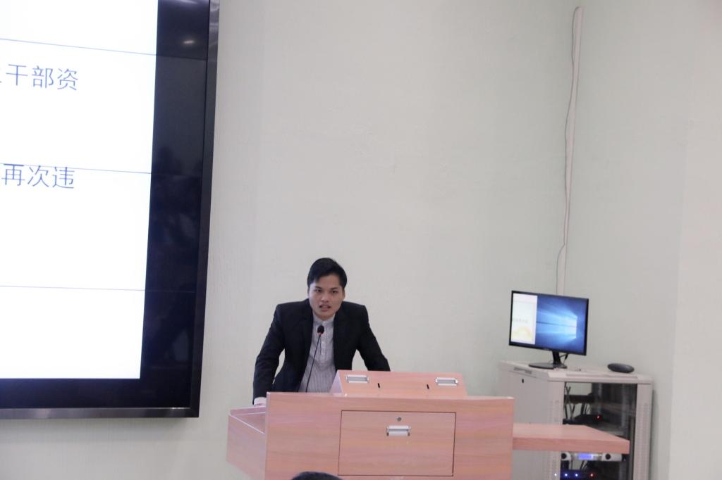 大会伊始,由主持人江庆基老师为大家传达考风考纪要求,其中着重强调,一旦发现携带手机、代考等作弊违规行为,将取消学生干部资格,由学校予以处分或开除学籍处理,并通过例举我系作弊处分案例,为在座每位学生干部敲响了警钟。