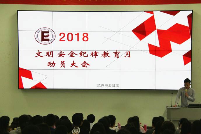 为了规范广大学生言行举止、增强纪律观念和安全防范意识,促进华商学子形成良好的学习氛围和养成规范的行为习惯,增强同学们的自觉性,我校决定于2018年4月2日—2018年5月8日开展全校性文明安全纪律教育月活动,我系积极响应学院的号召,并于2018年4月10号14:30在励志楼B207举行了经济与金融系文明安全纪律教育月动员大会。