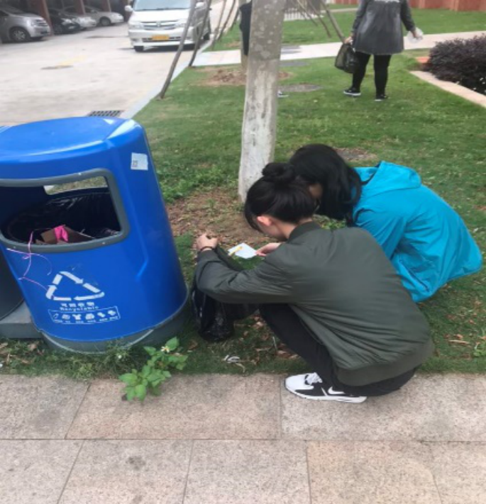 17本国贸6班志愿公益同学在分类垃圾
