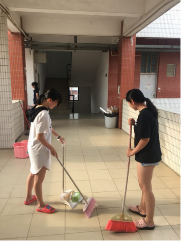 17本国贸2班志愿公益同学在打扫清洁
