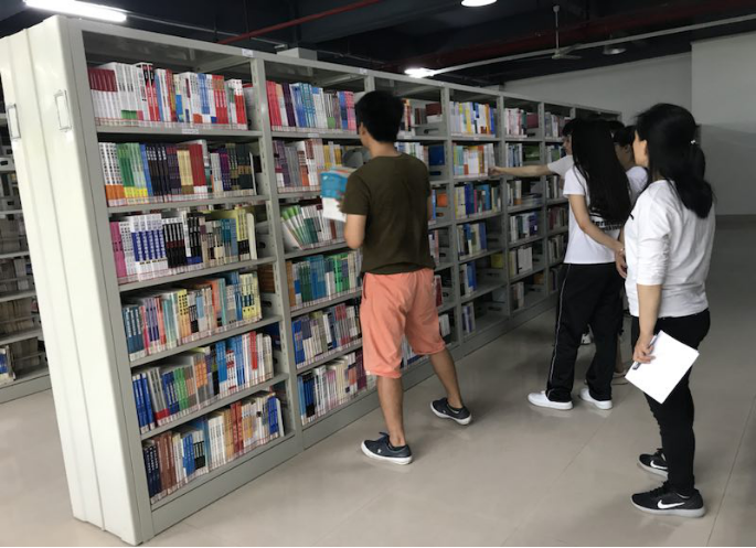 17本国贸1班志愿公益同学在图书馆整理书籍