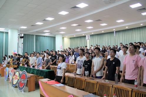 总结大会伊始,全体起立,奏唱团歌。歌曲激励着我们要继续不忘初心,砥砺前行,让五四精神与班级文化相融合,共同助力班团文化。
