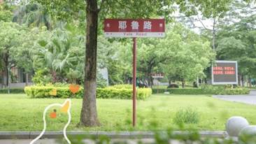 励志楼面对大石头的左边有一条耶鲁路,这是华商的网红路喔!记得打卡呀!