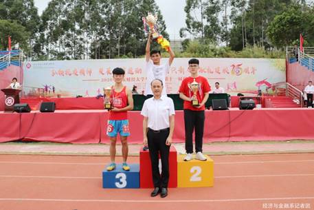 经济管理学院在本届运动会中一战到底,屡创佳绩,荣获团体总分第一名,以及优秀组织奖!单项比赛中共含有五项第一名,其中我院陈尧同学打破男子400米记录,团体接力赛均获的优异成绩,其中男子4×100米、女子4×100米荣获第一!