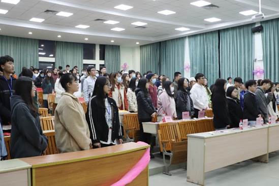 团歌响起,全体成员起立,奏唱团歌。